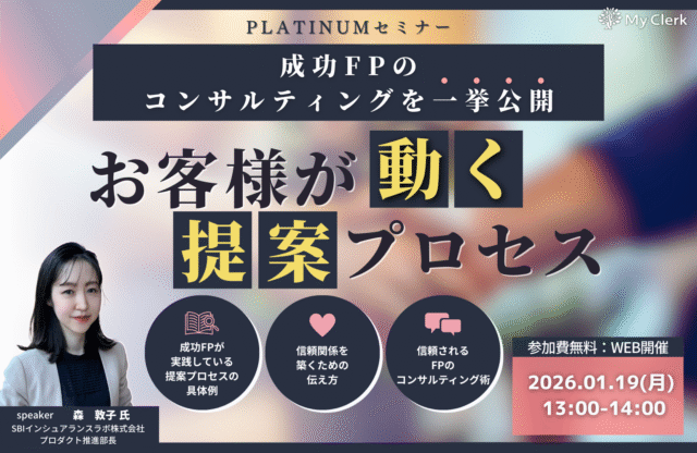 2026年1月19日(月)開催まであと14日 受付中◆PLATINUMセミナー◆ 成功FPのコンサルティングを一挙公開 〜お客様が動く提案プロセス〜